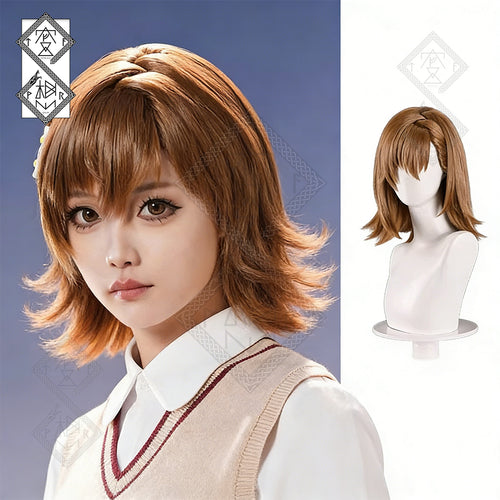A Certain Scientific Railgun Misaka Mikoto Cosplay Wig – Toaru Kagaku no Railgun Anime Wig | Brown Short Wig with Bangs | Heat Resistant Synthetic Hair for Halloween Costume
